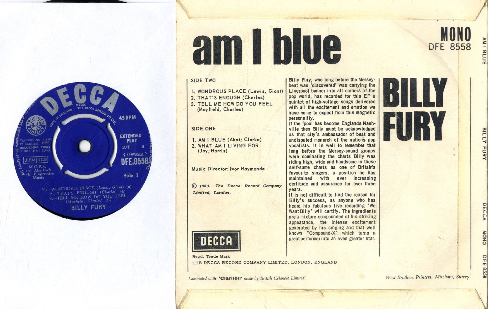 Billy Fury - Am I Blue (DFE 8558)