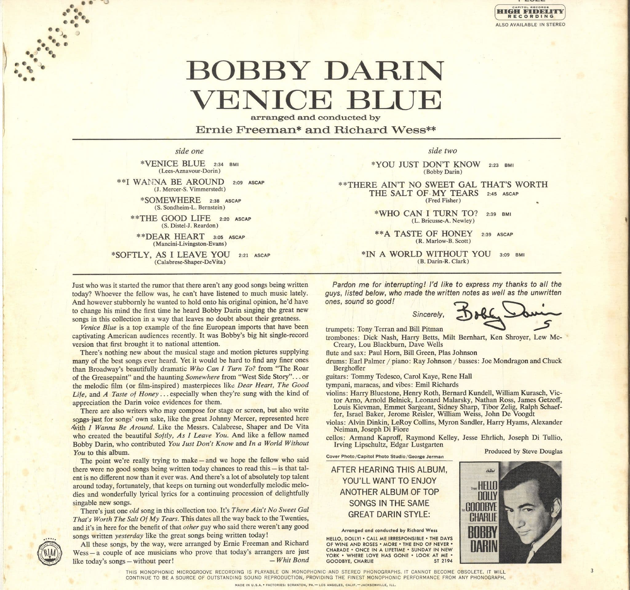 Bobby Darin - Venice Blue ( T 2322) Promo Stamped - Ex/M-