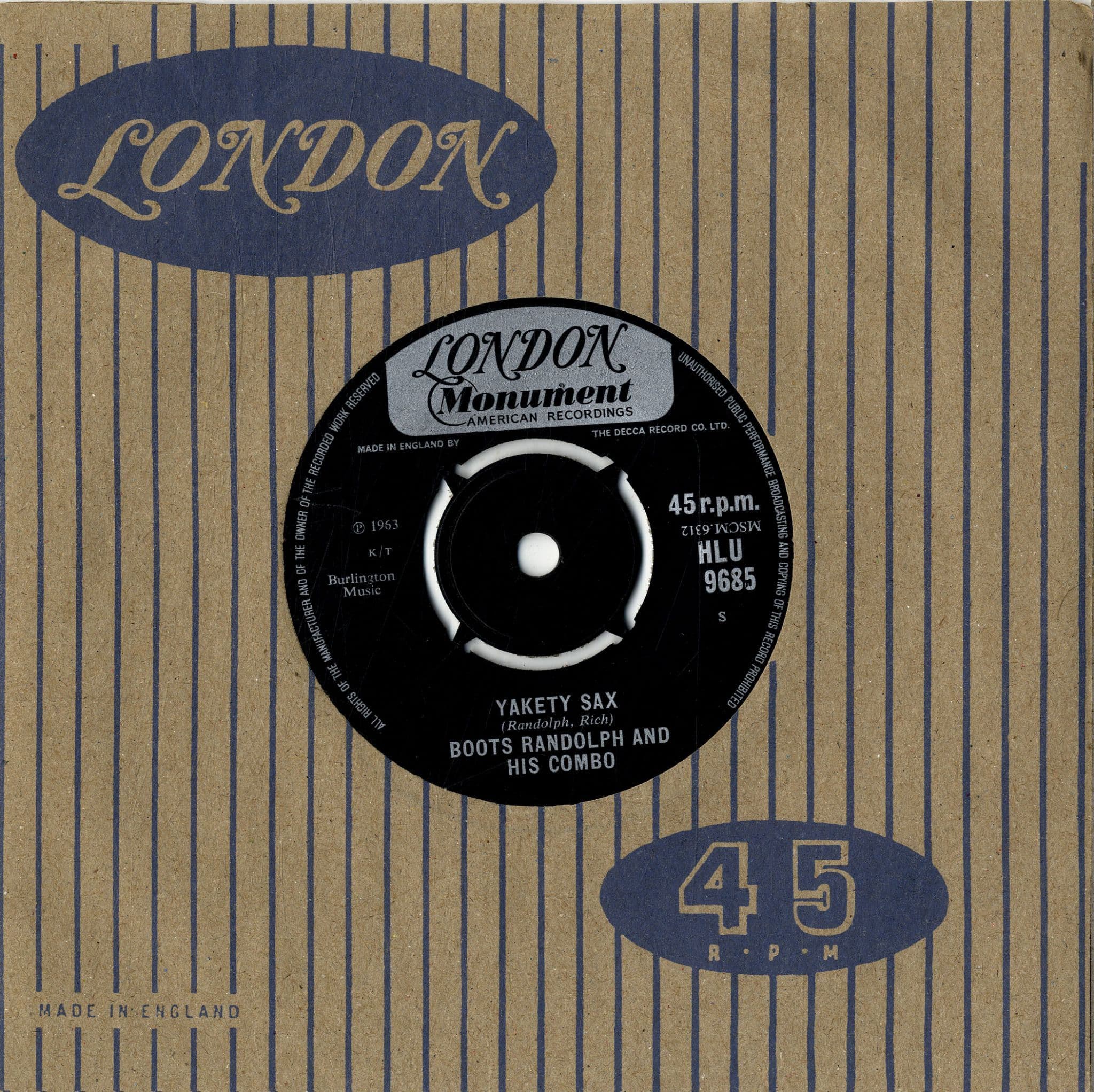 Boots Randolph And His Combo - Yakety Sax/I Really Don't Want To Know (HLU 9685) M-