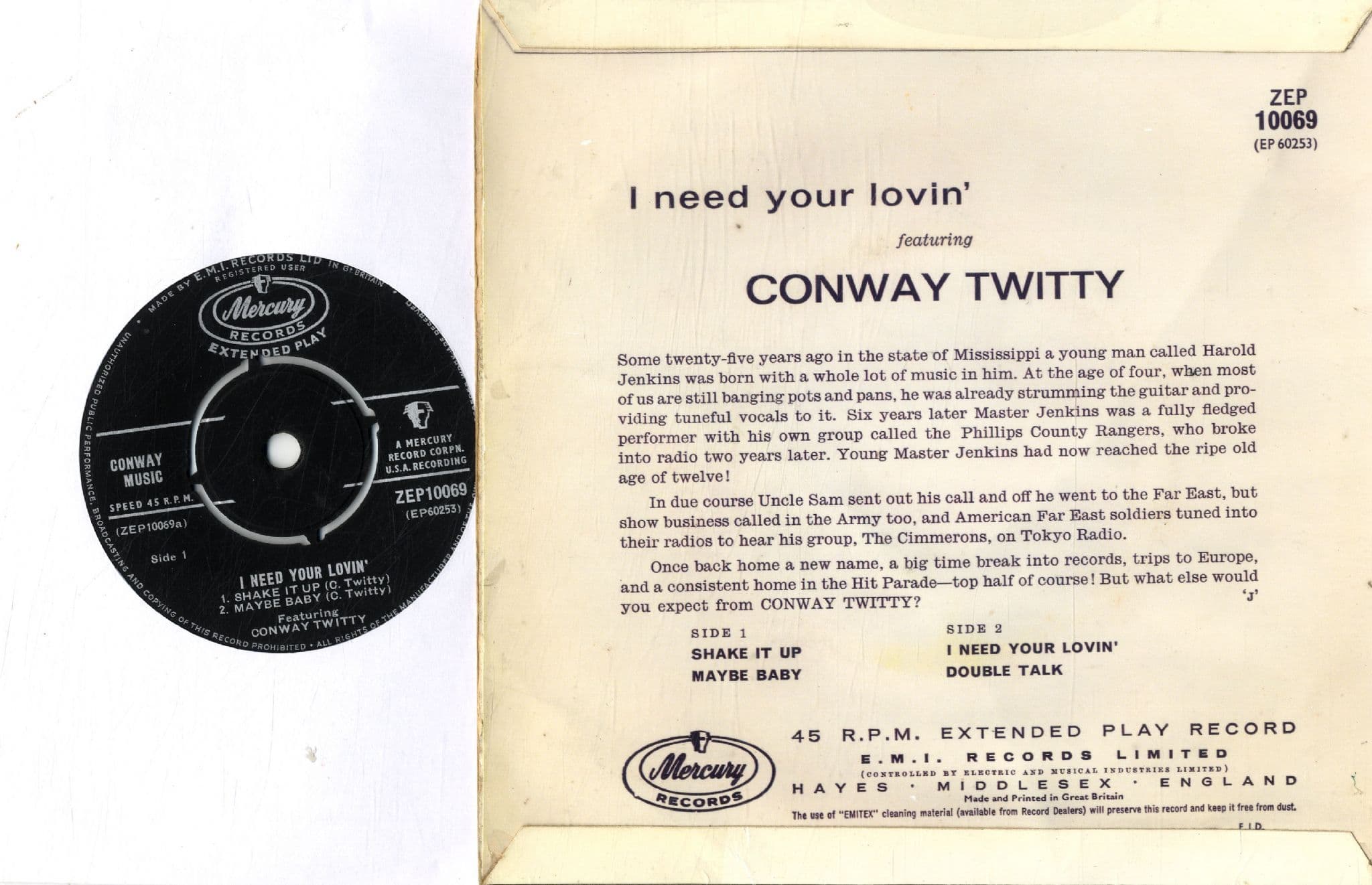 Conway Twitty - I Need Your Lovin' ZEP 10069) His Rarest EP