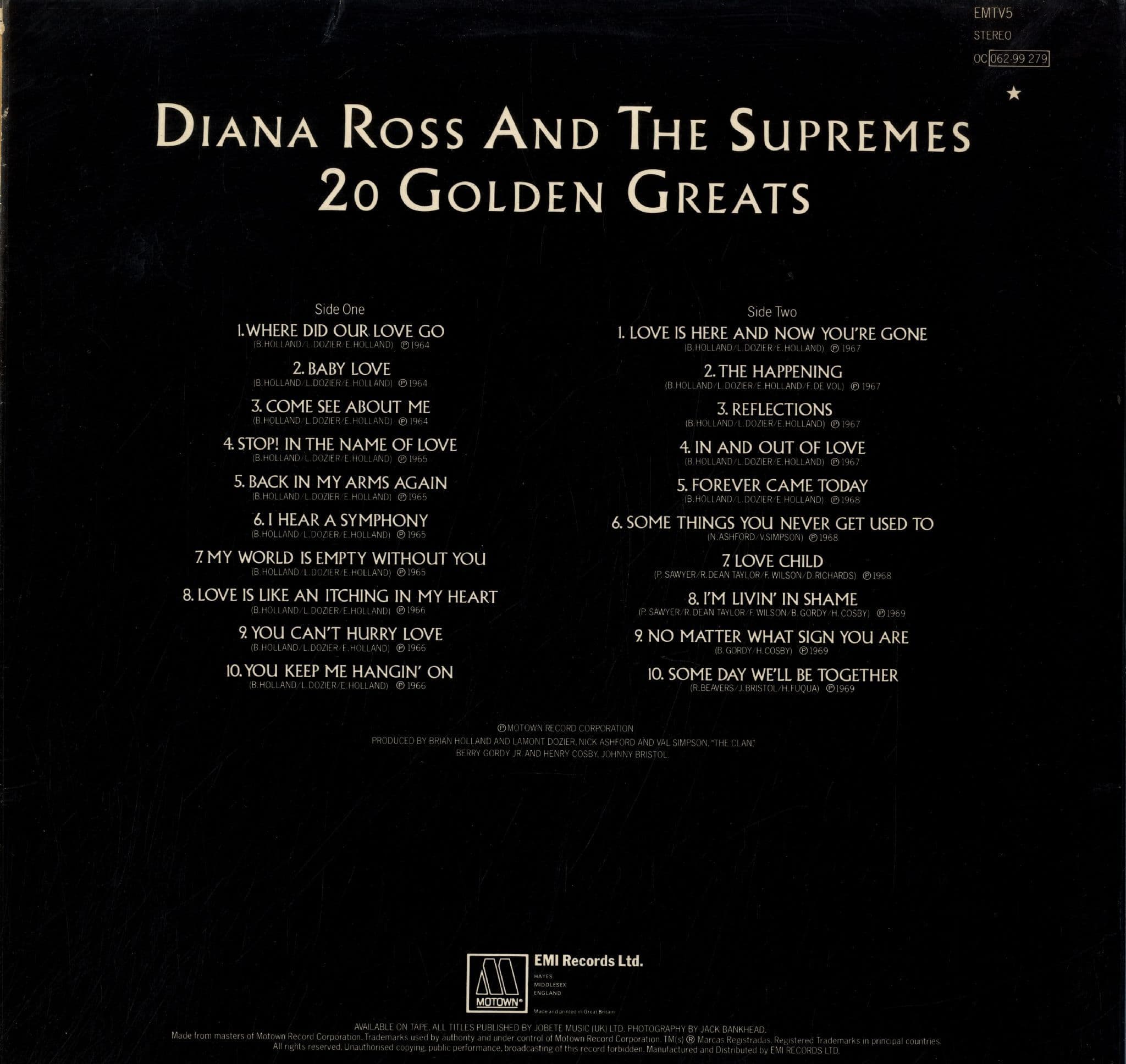Diana Ross and The Supremes - 20 Golden Greats (EMTV5) M-
