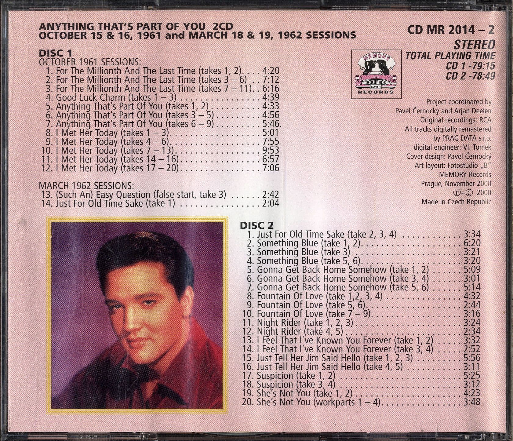 Elvis Presley - Anything That's Part Of You - Memory 2 CD Set