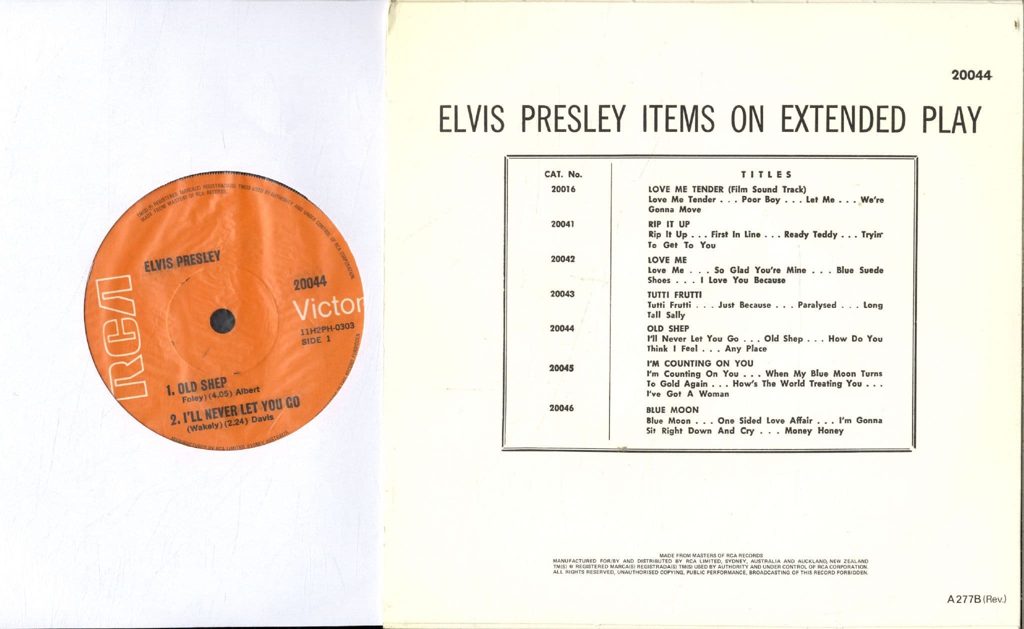 Elvis Presley - Australia - Old Shep (20044) Ex/M-