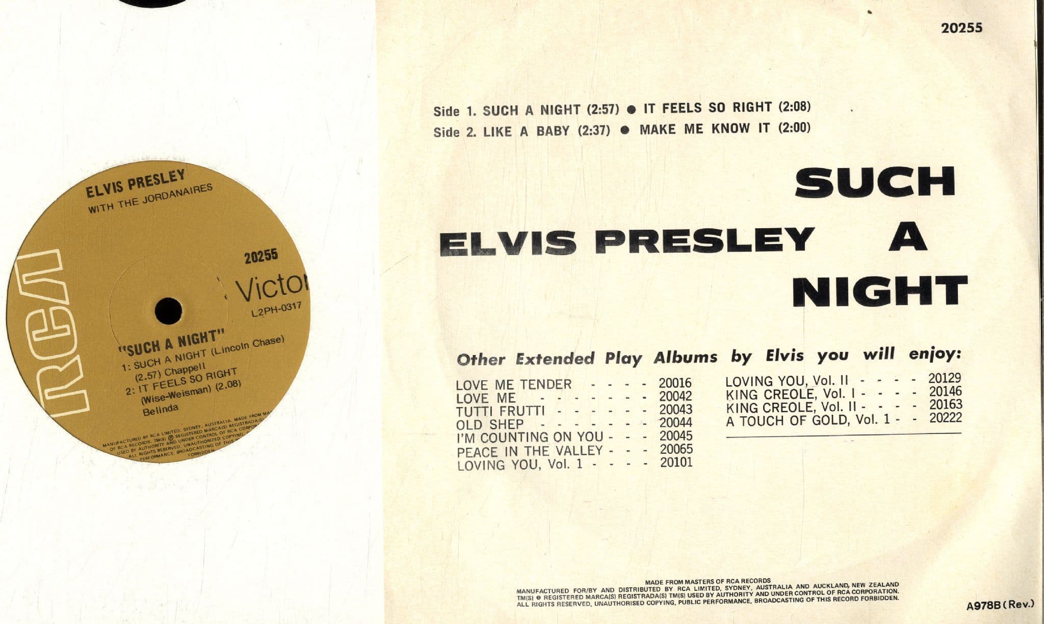 Elvis Presley - Australia & New Zealand - Such A Night (20255) M-