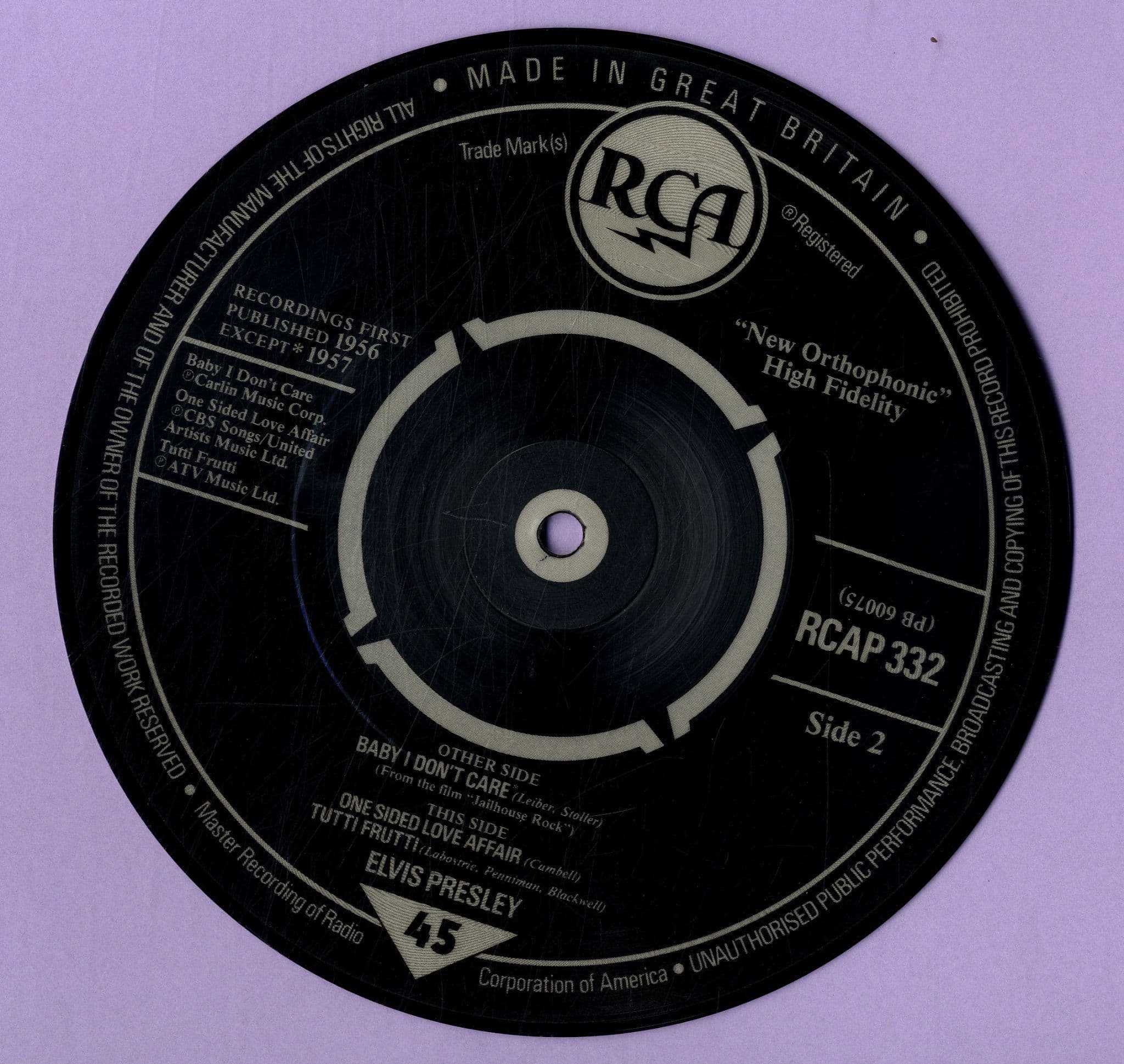 Elvis Presley - Baby I Don't Care/One Sided Love Affair/Tutti Frutti - Picture Disc - M-