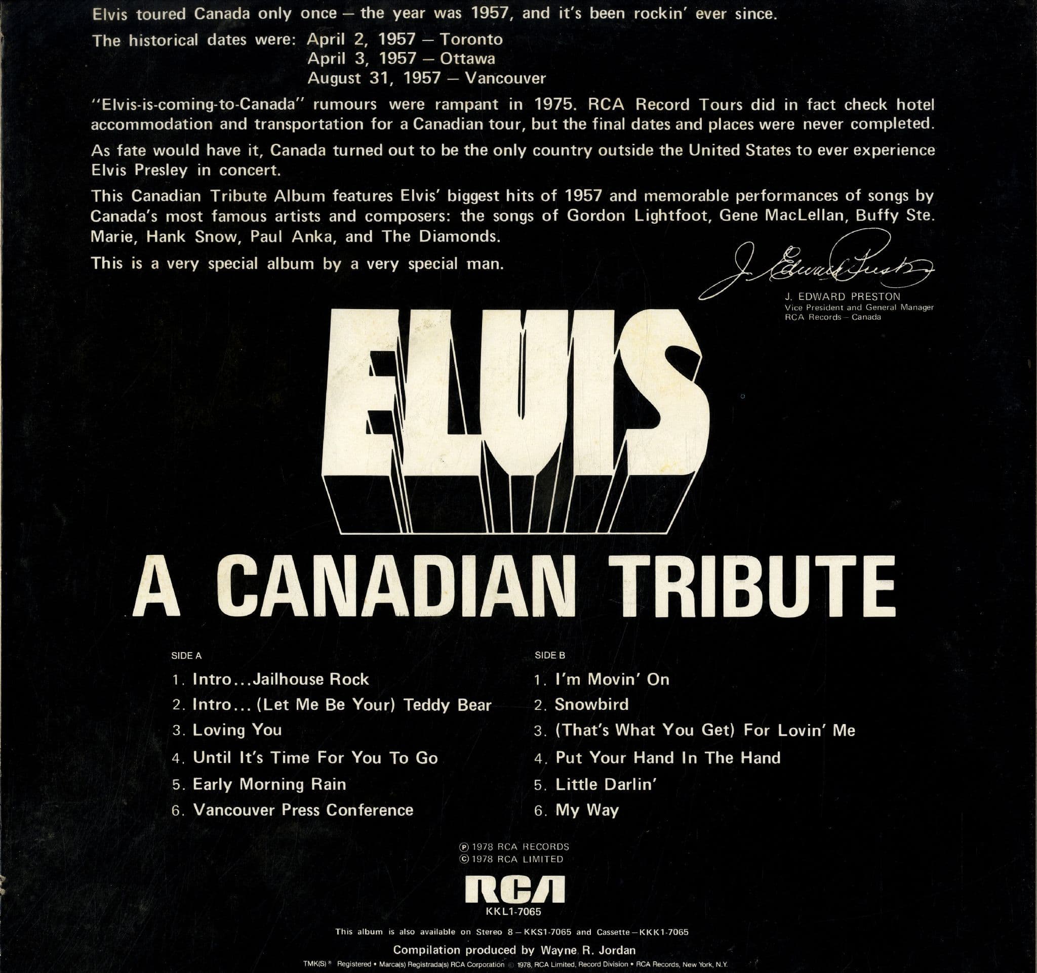 Elvis Presley - Canada - A Canadian Tribute (KKL1-7065) Gold Vinyl - M-