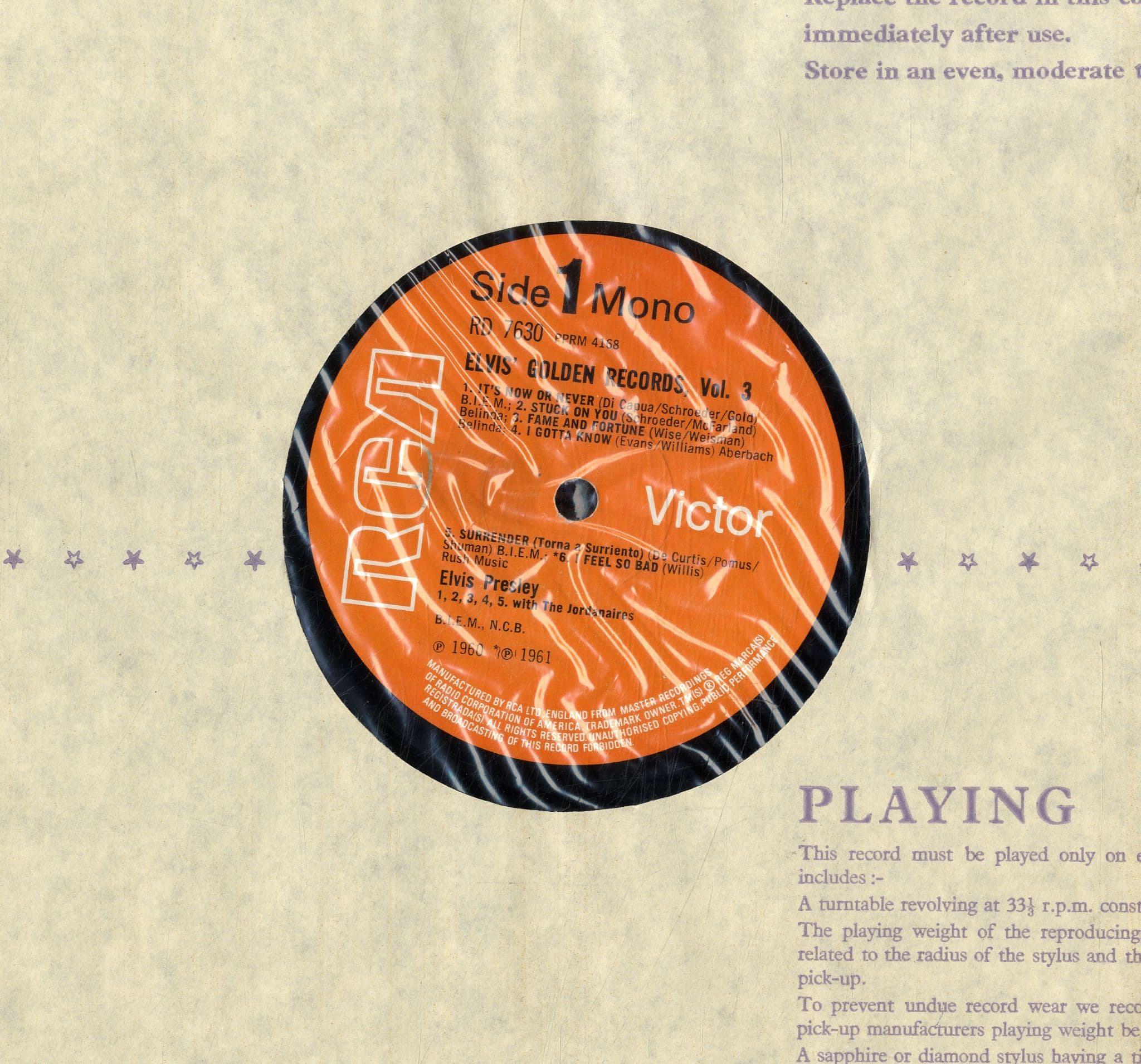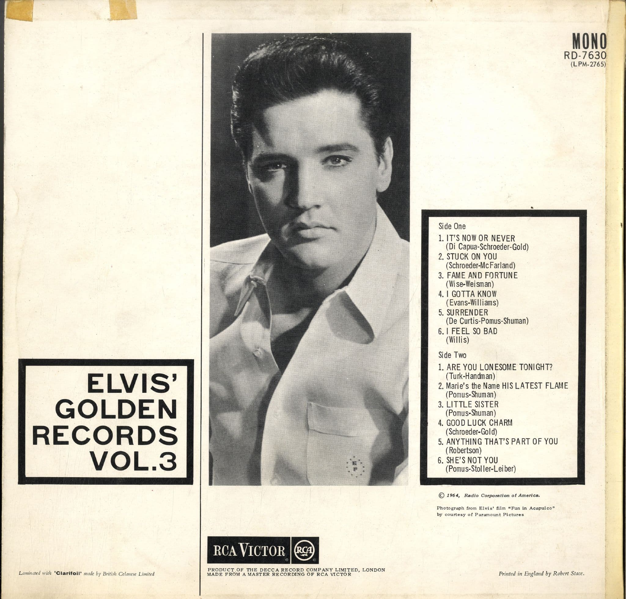 Elvis Presley - Elvis' Golden Records Volume 3 (RD 7630) Small Orange Mono Label