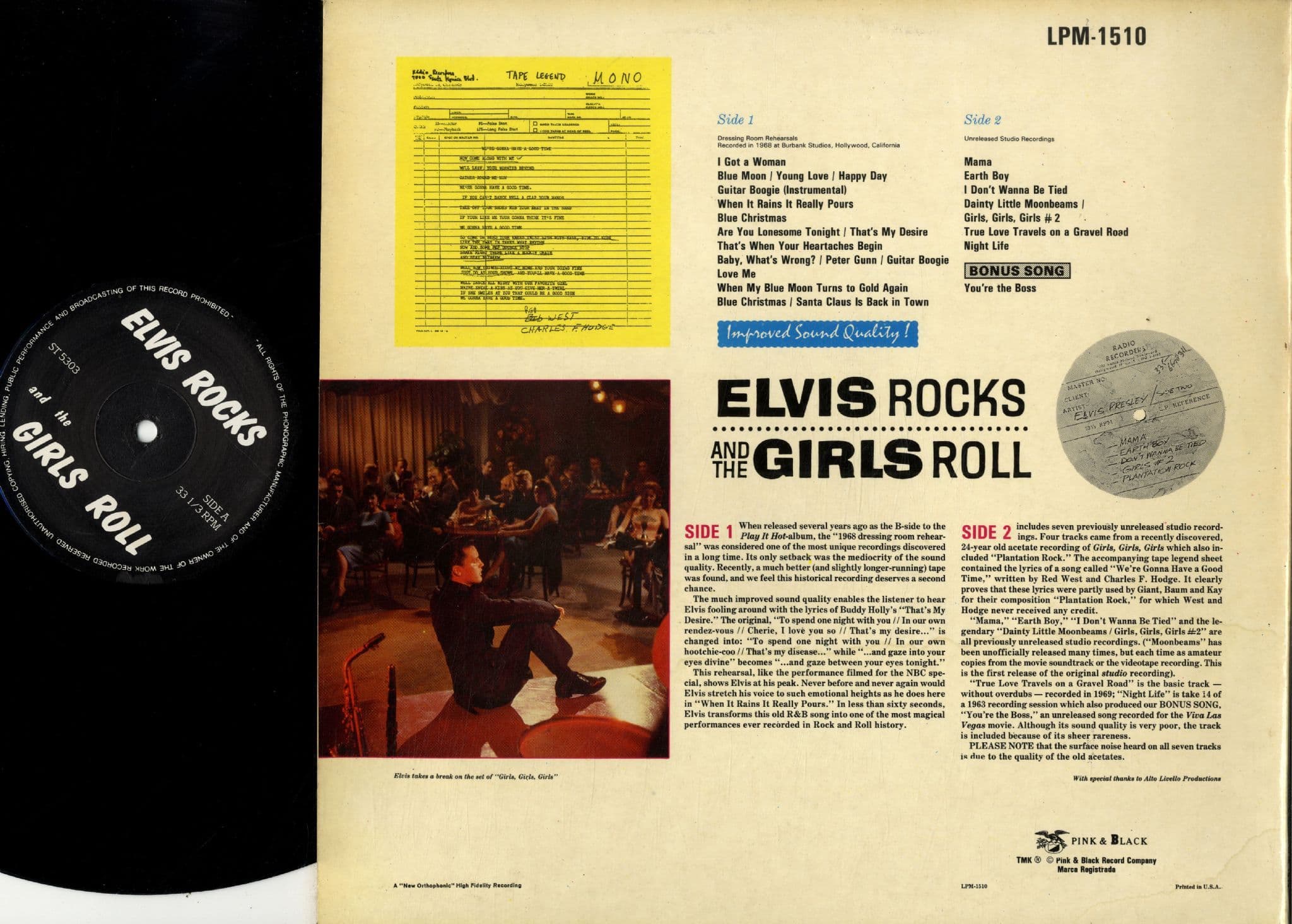 Elvis Presley - EU - Elvis Rocks And The Girls Roll (LPM 1510) M-