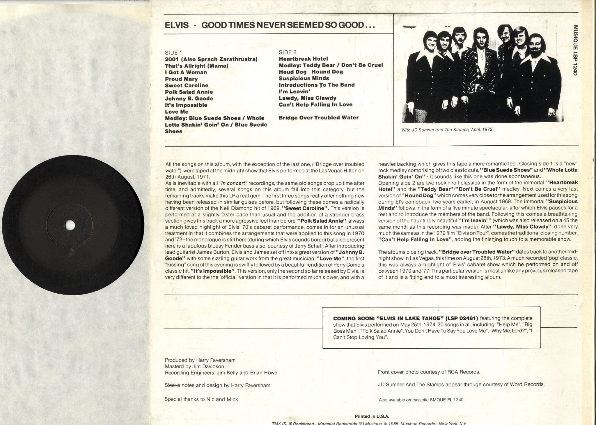 Elvis Presley - EU - Good Times (Never Seemed So Good) LSP 1240 Ex/M-