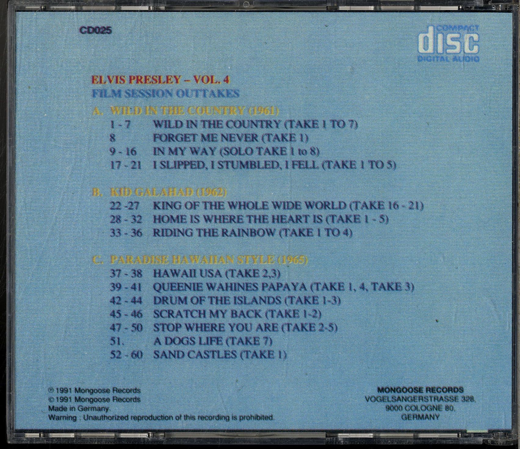 Elvis Presley - Film Session Outtakes Vol. 4 - Mongoose CD