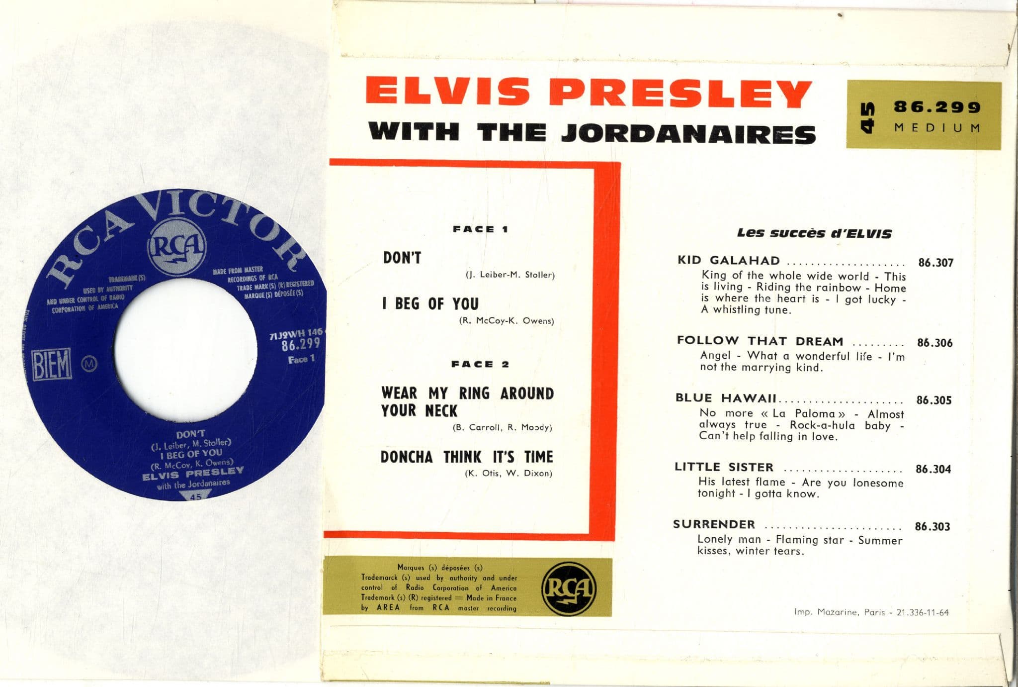 Elvis Presley - France - Don't (86.299) M-/M-