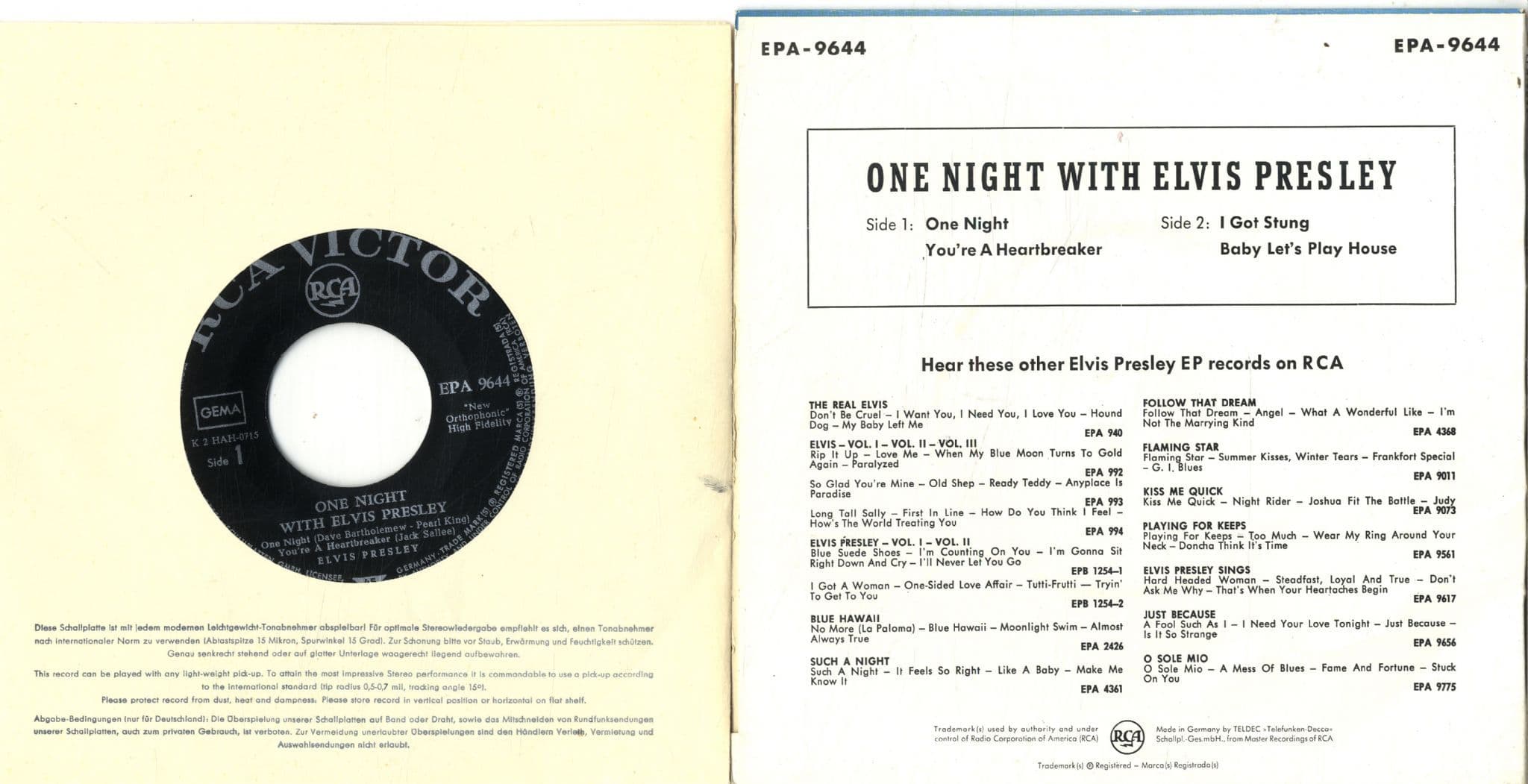 Elvis Presley - Germany - One Night With Elvis Presley (EPA 9644) Ex/M-