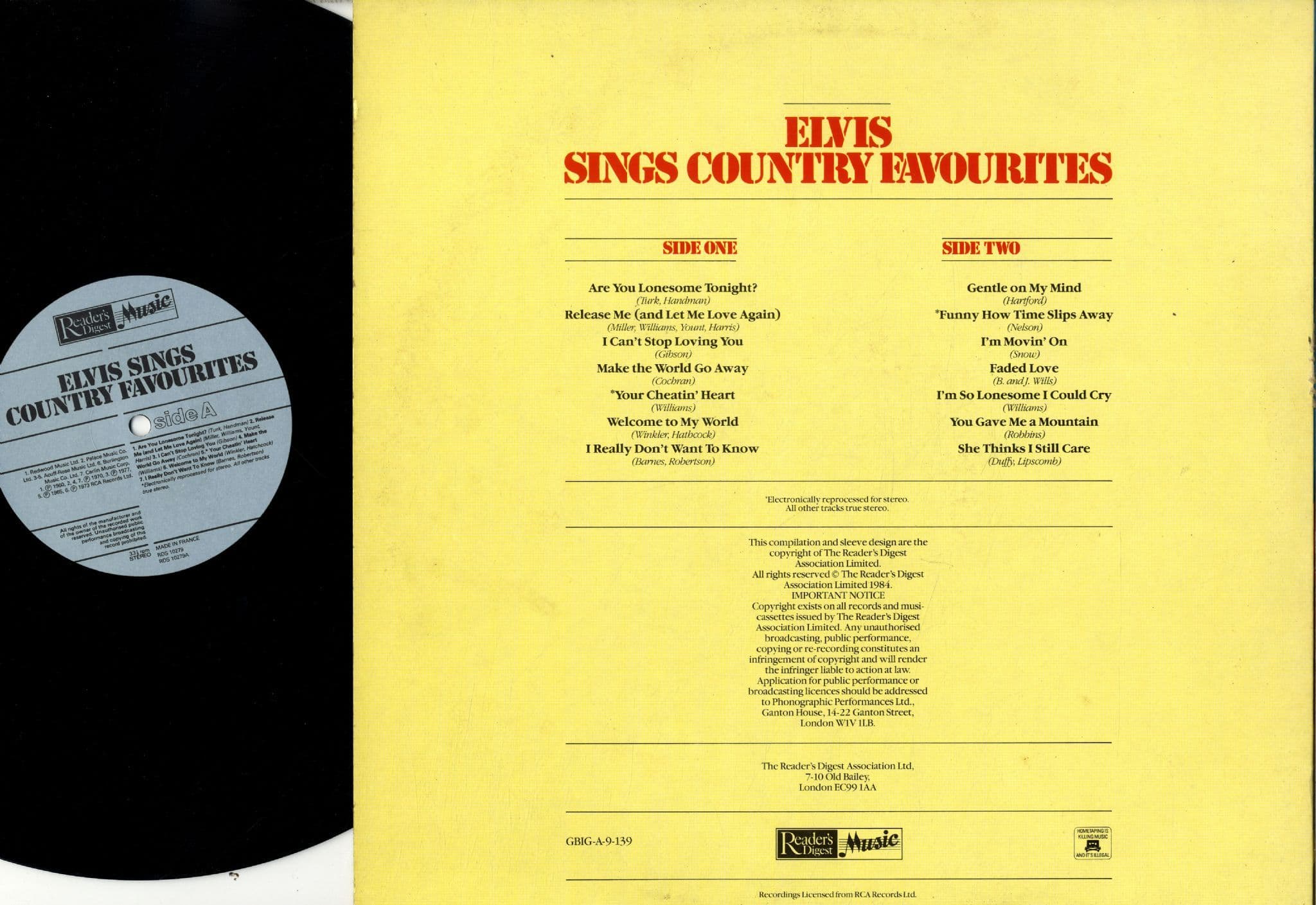Elvis Presley - Sings Country Favourites (9239) Readers Digest - Light Blue Label - M-