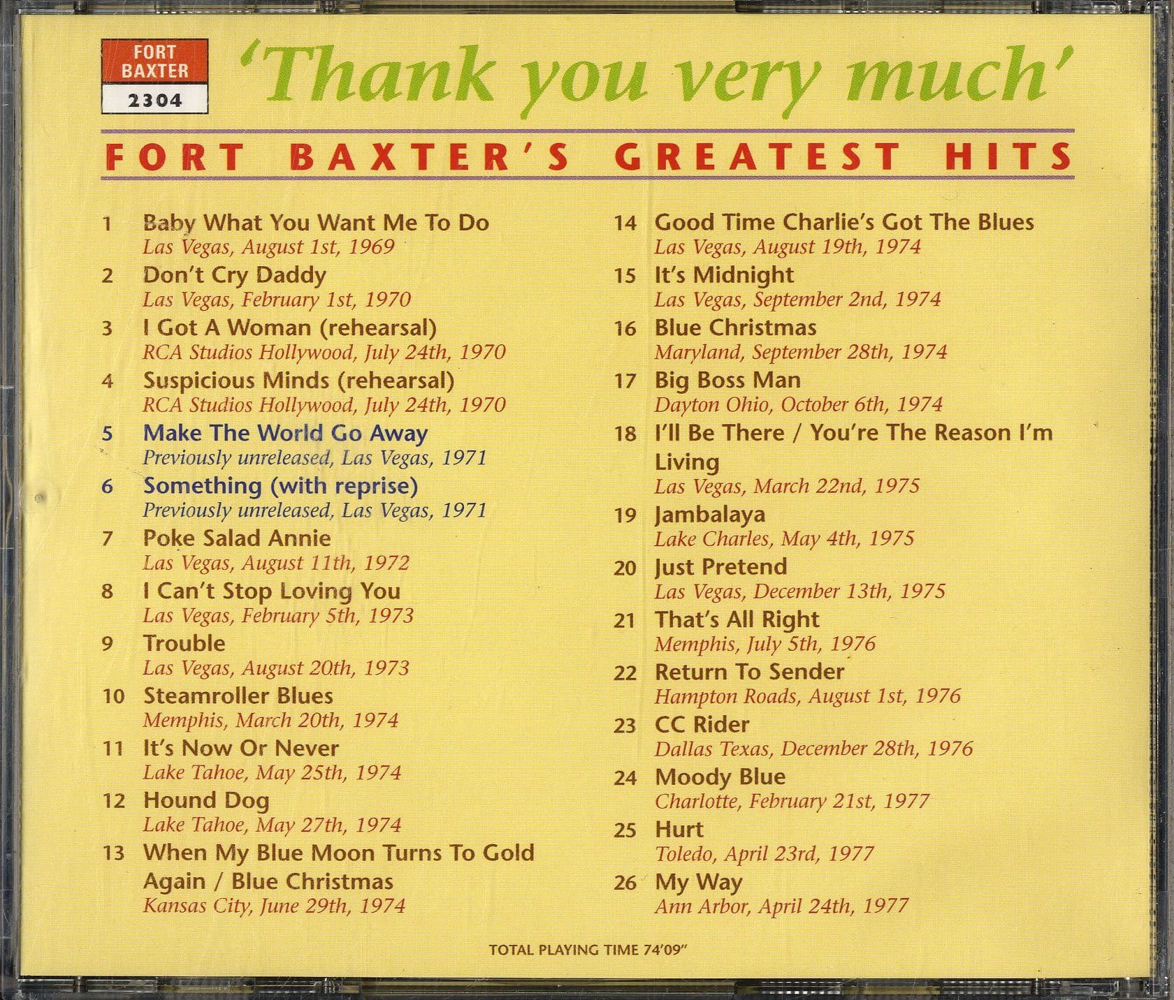 Elvis Presley - Thank You Very Much - Fort Baxter's Greatest Hits (2304)