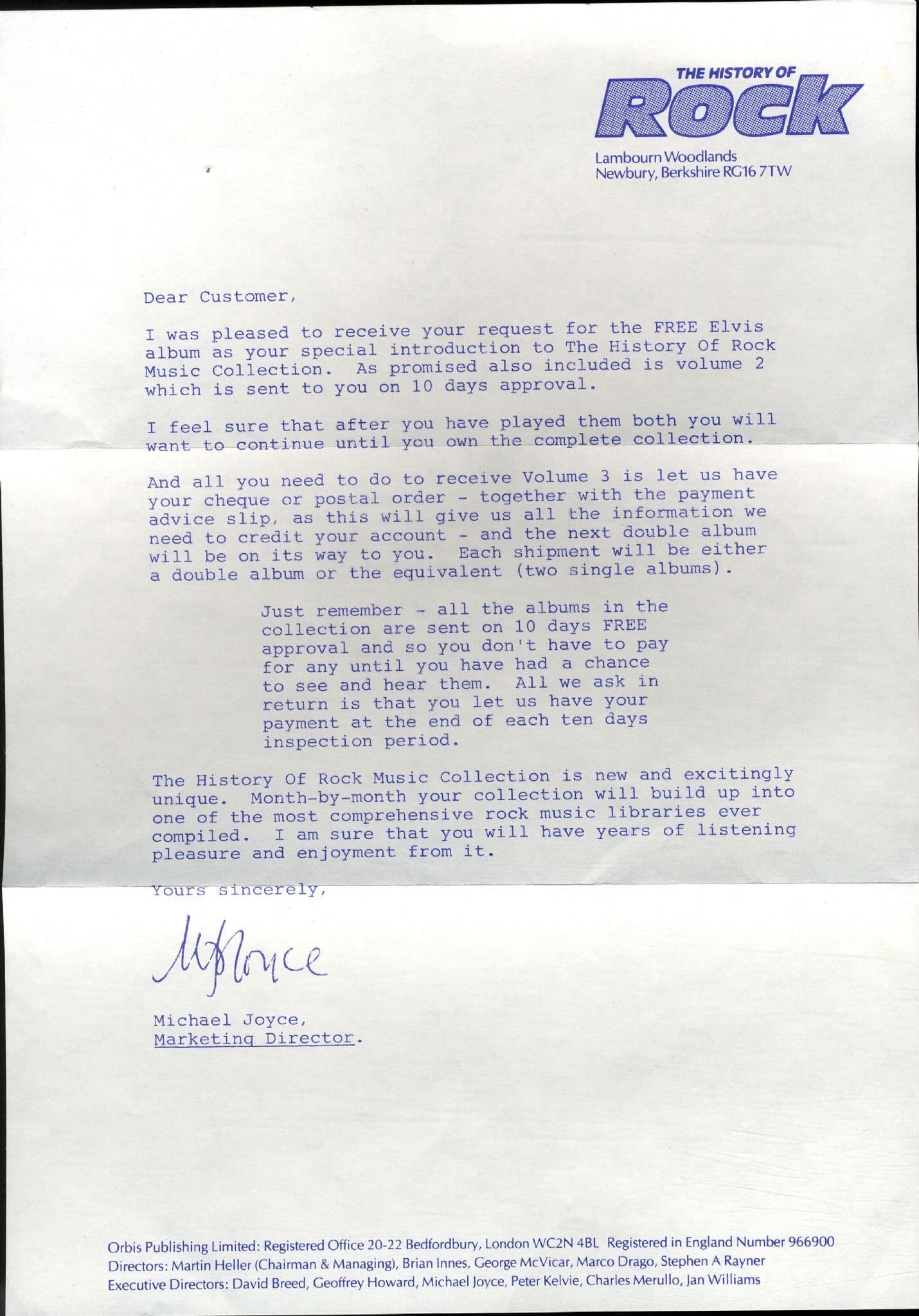 Elvis Presley - The History Of Rock Volume 1(HRL 001) With Letter - M-/ M-