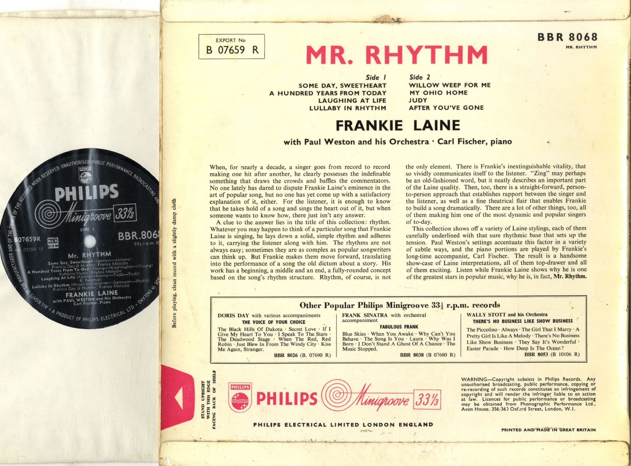 Frankie Laine - Mr. Rhythm (BBR 8068) 10" LP