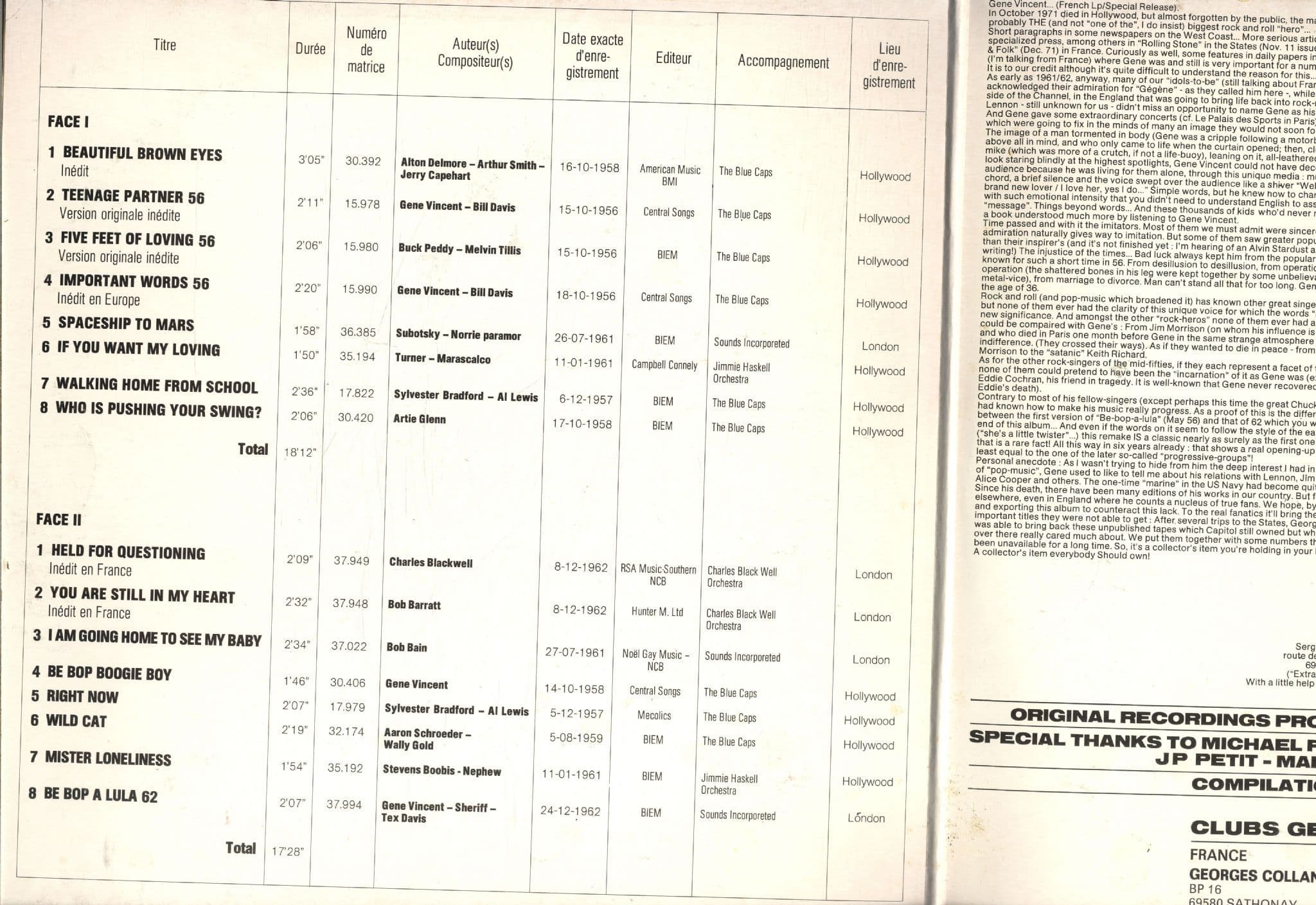 Gene Vincent - Story 6 - A Tribute To My Best Friend (C066-81618) Gatefold Sleeve - M- (France)