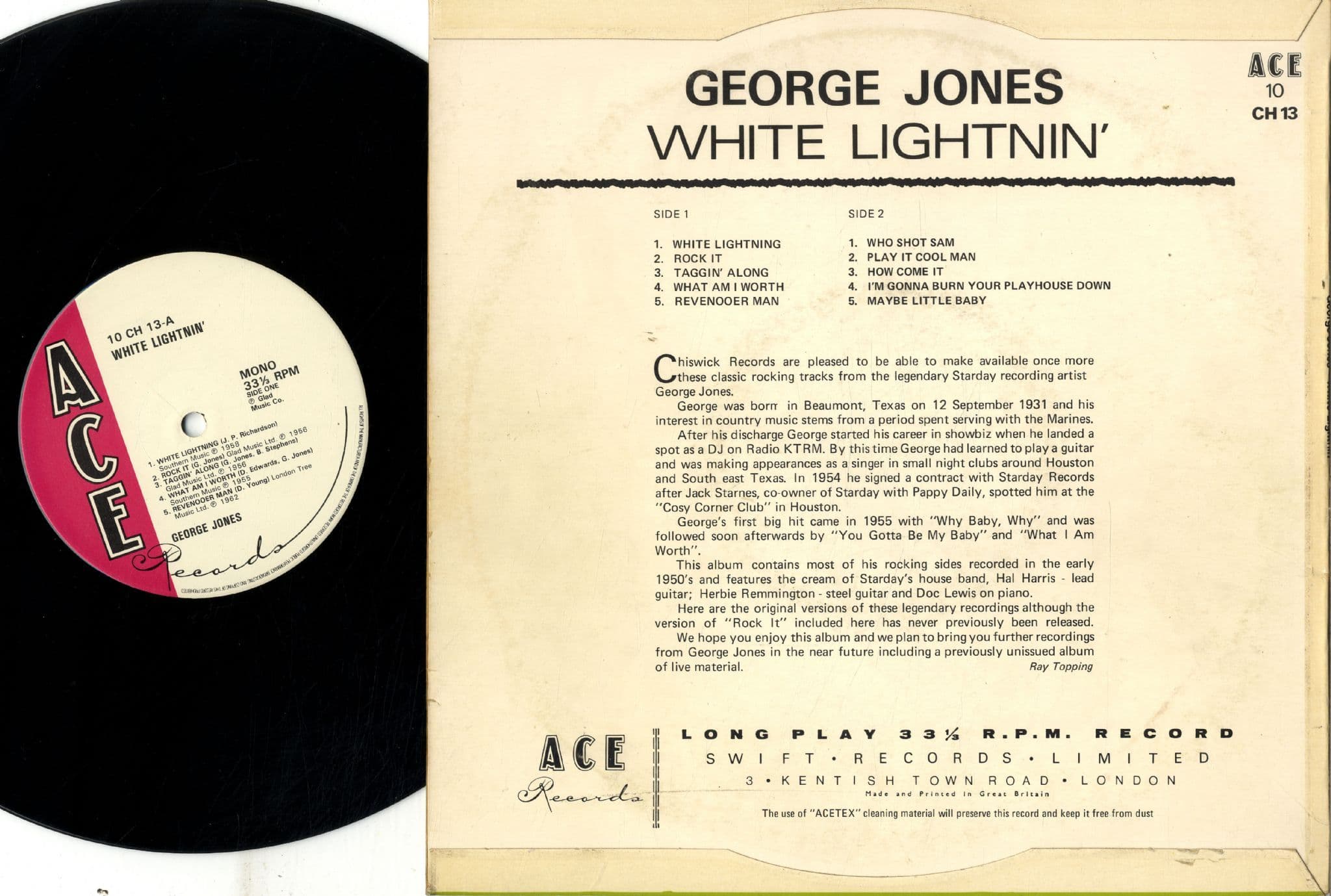 George Jones - White Lightning (CH 13) 10" Lp - M-
