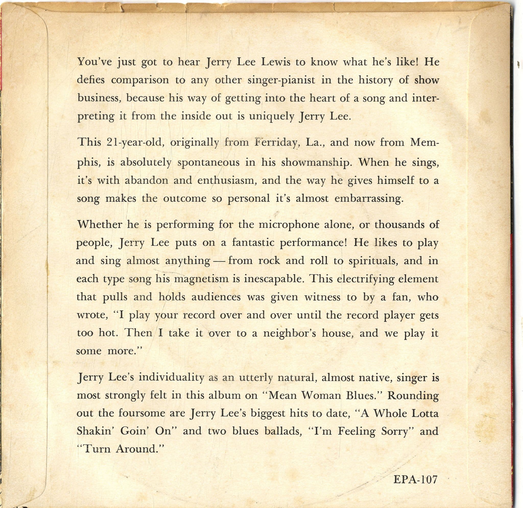 Jerry Lee Lewis - The Great Ball Of Fire (EPA 107) His 1st EP