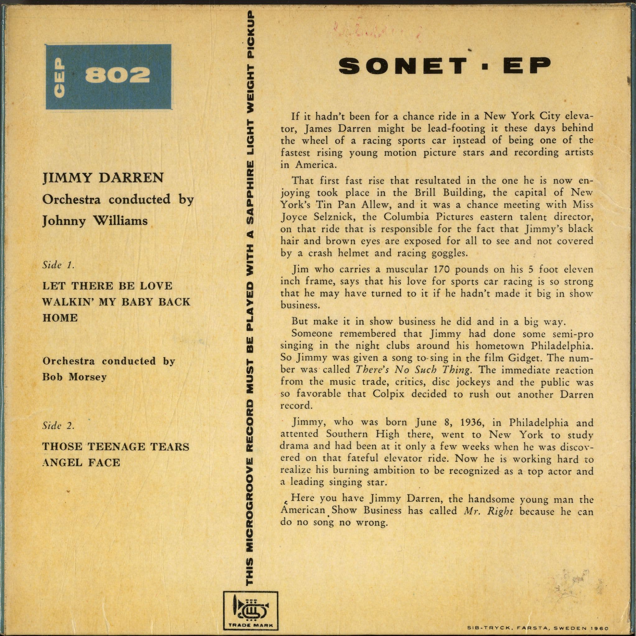 Jimmy Darren - Angel Face - Those Teenage Tears - Sweden Red Vinyl