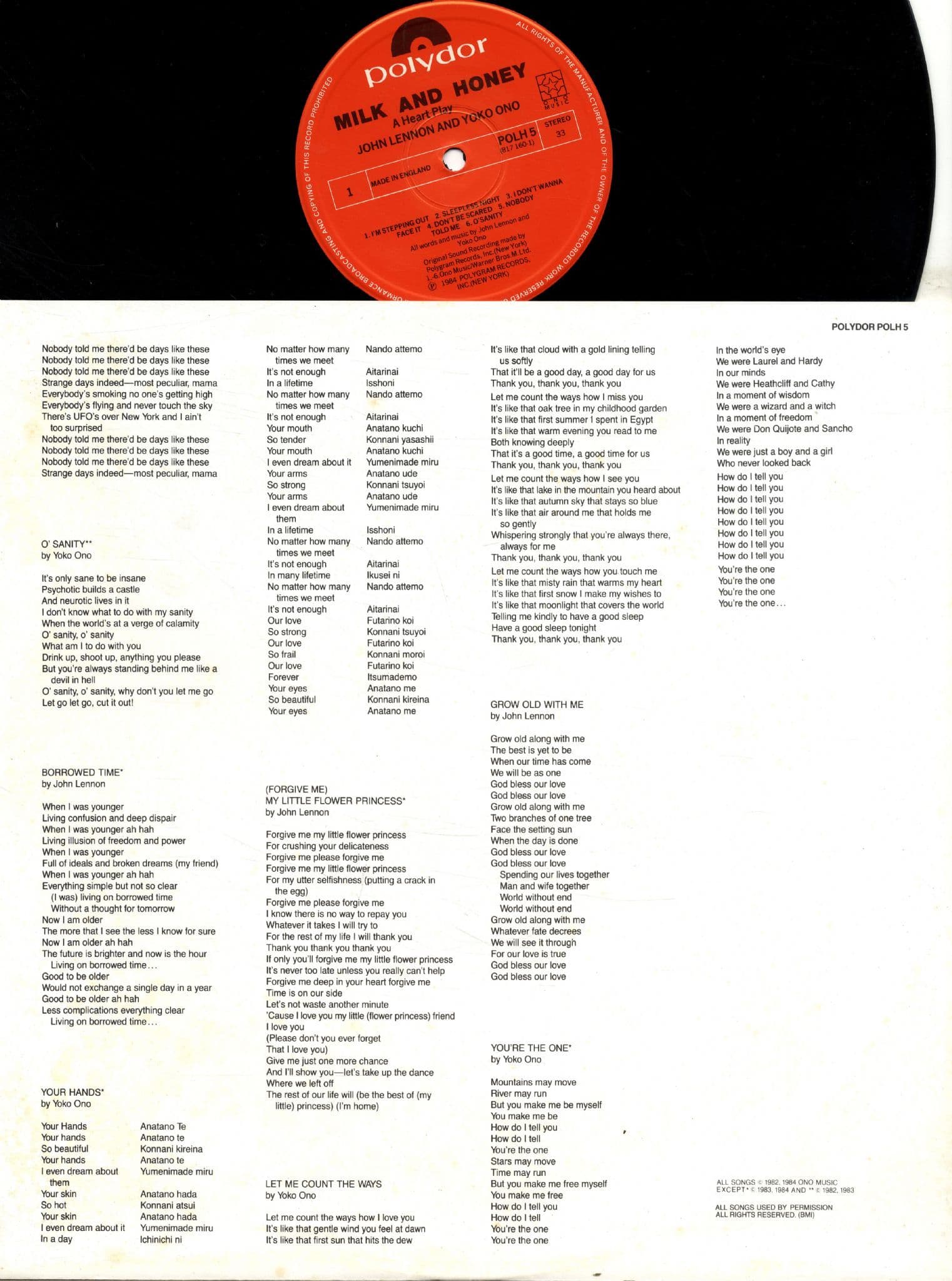 John Lennon and Yoko Ono - Milk And Honey (POLH 5) Gatefold Sleeve - M-
