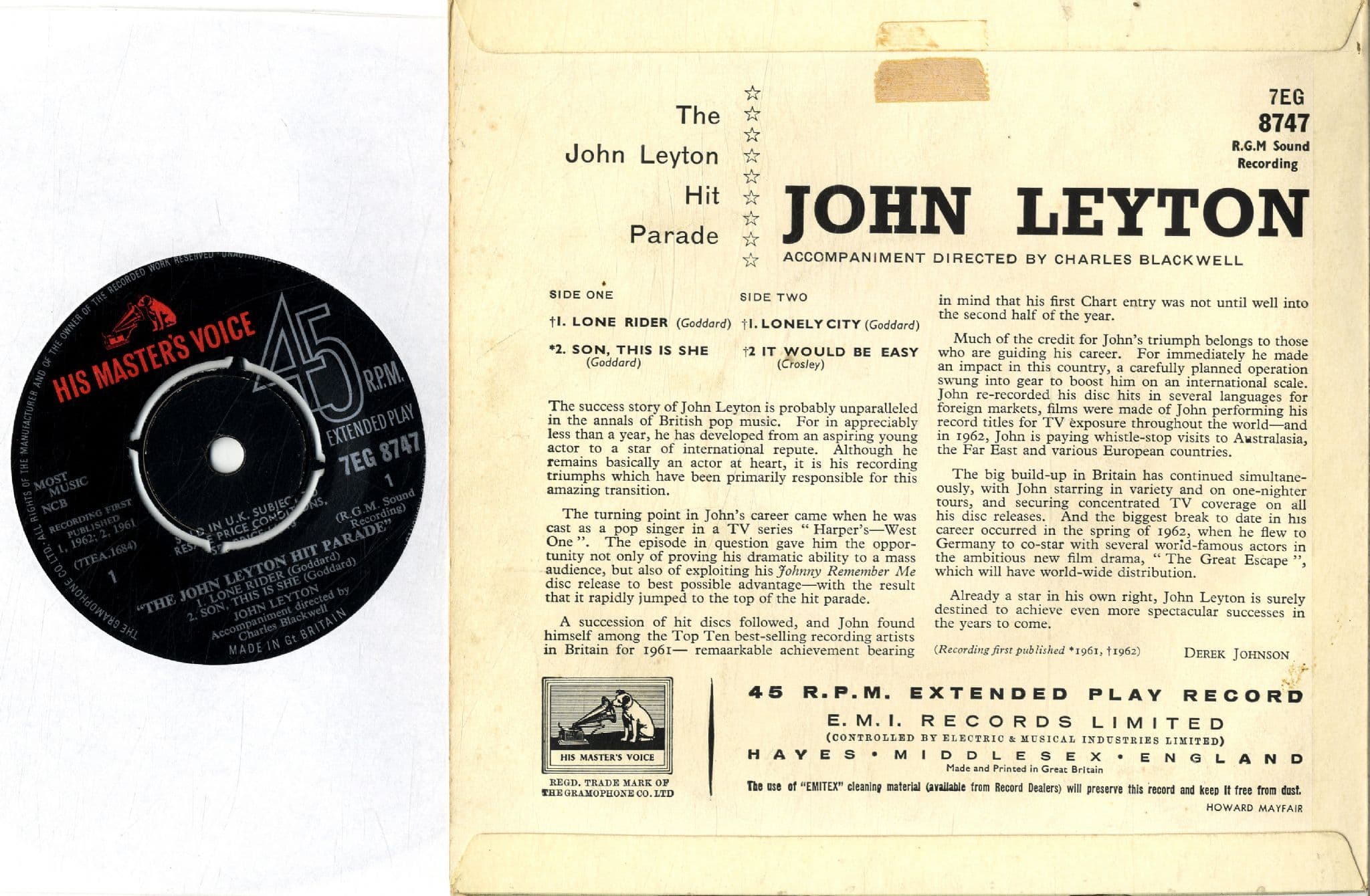 John Leyton - The John Leyton Hit Parade (7EG 8747) Autographed - Ex/Ex