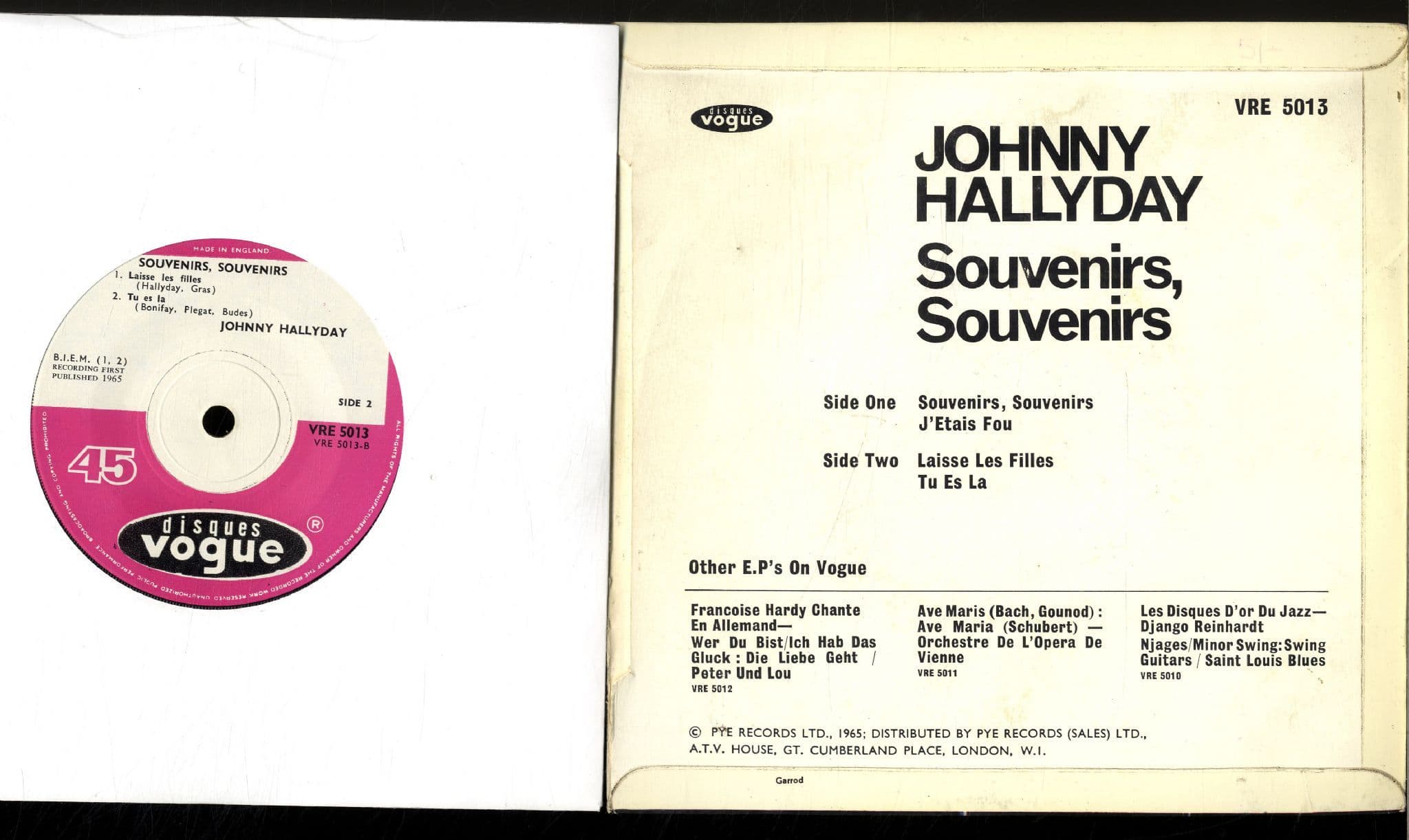 UK Disques Vogue  EP With Picture Sleeve (VRE 5013) - So Rare 1965 UK EP