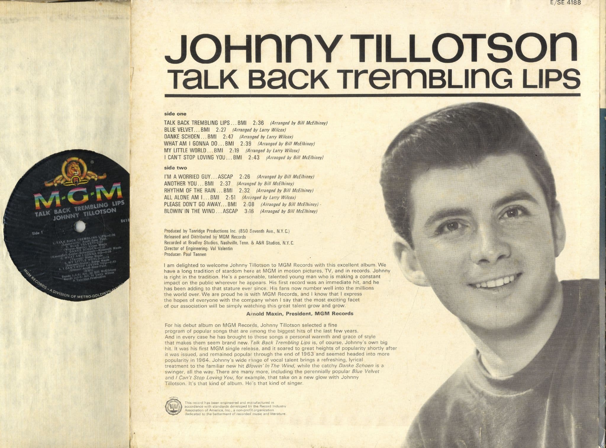 Johnny Tillotson - Talk Back Trembling Lips (E 4188)