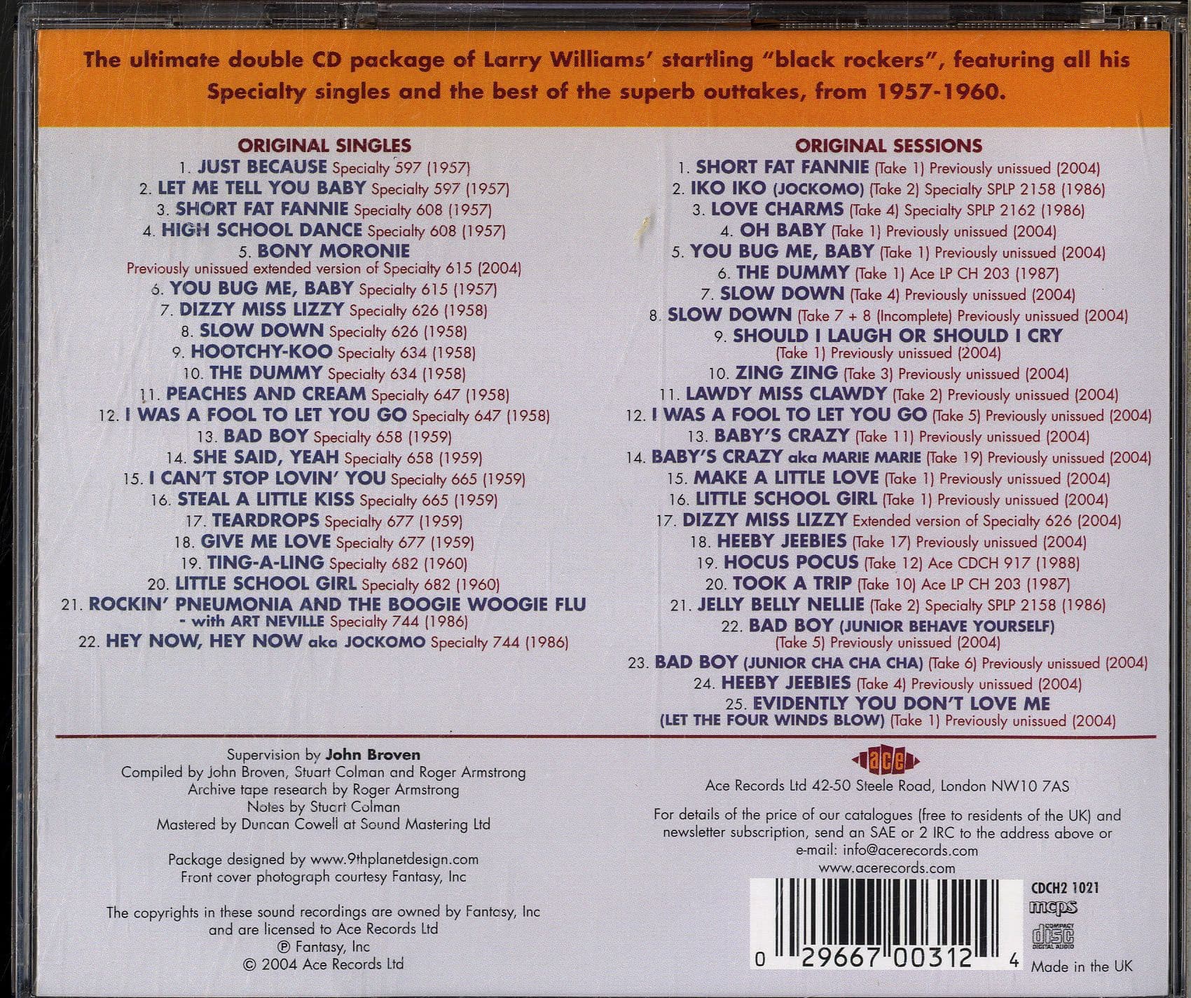 Larry Williams - The Speciality Rock 'n' Roll Years - Ace 2 CD Set
