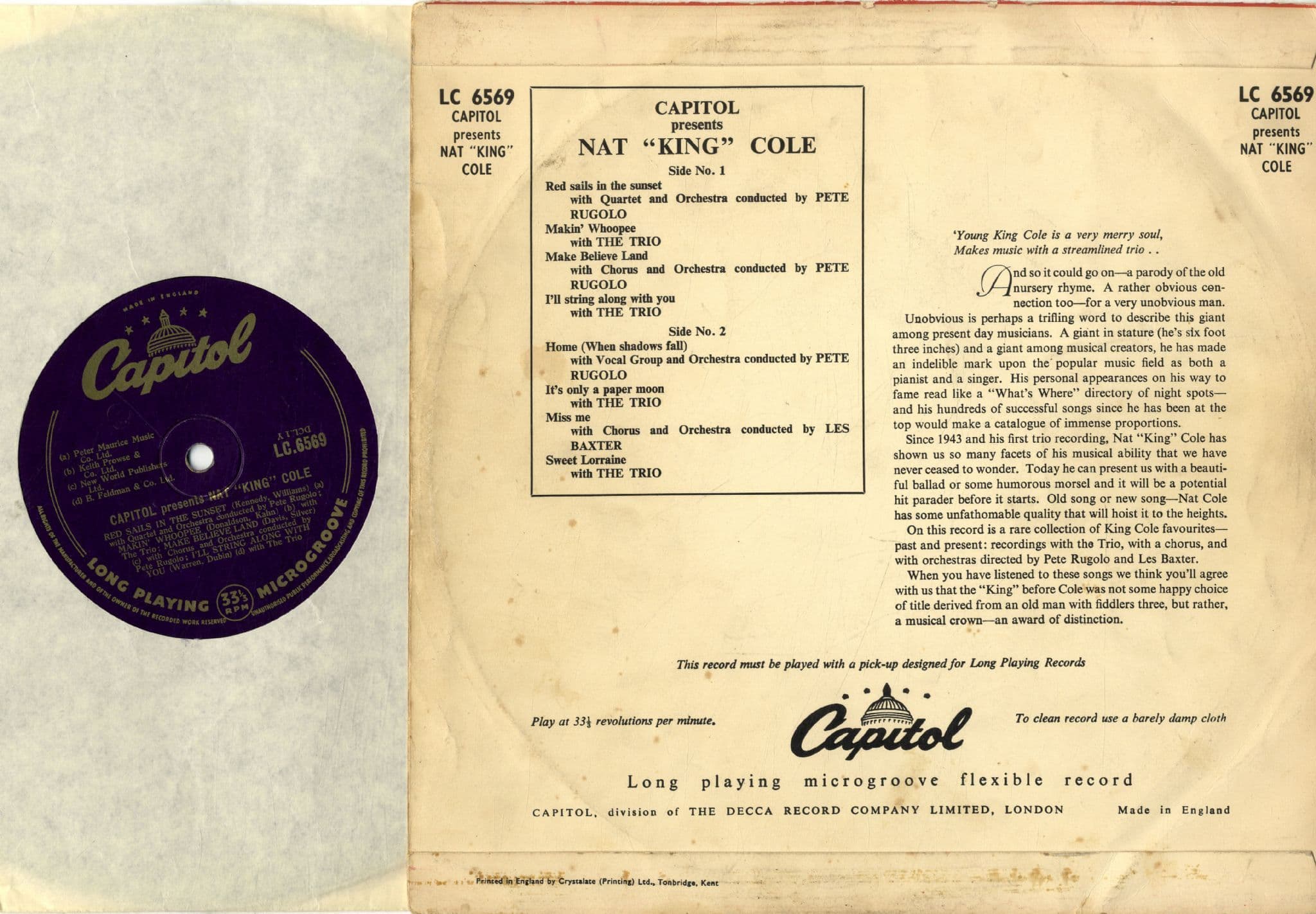 Nat King Cole - Capitol Presents .. (LC 6569) 10" LP