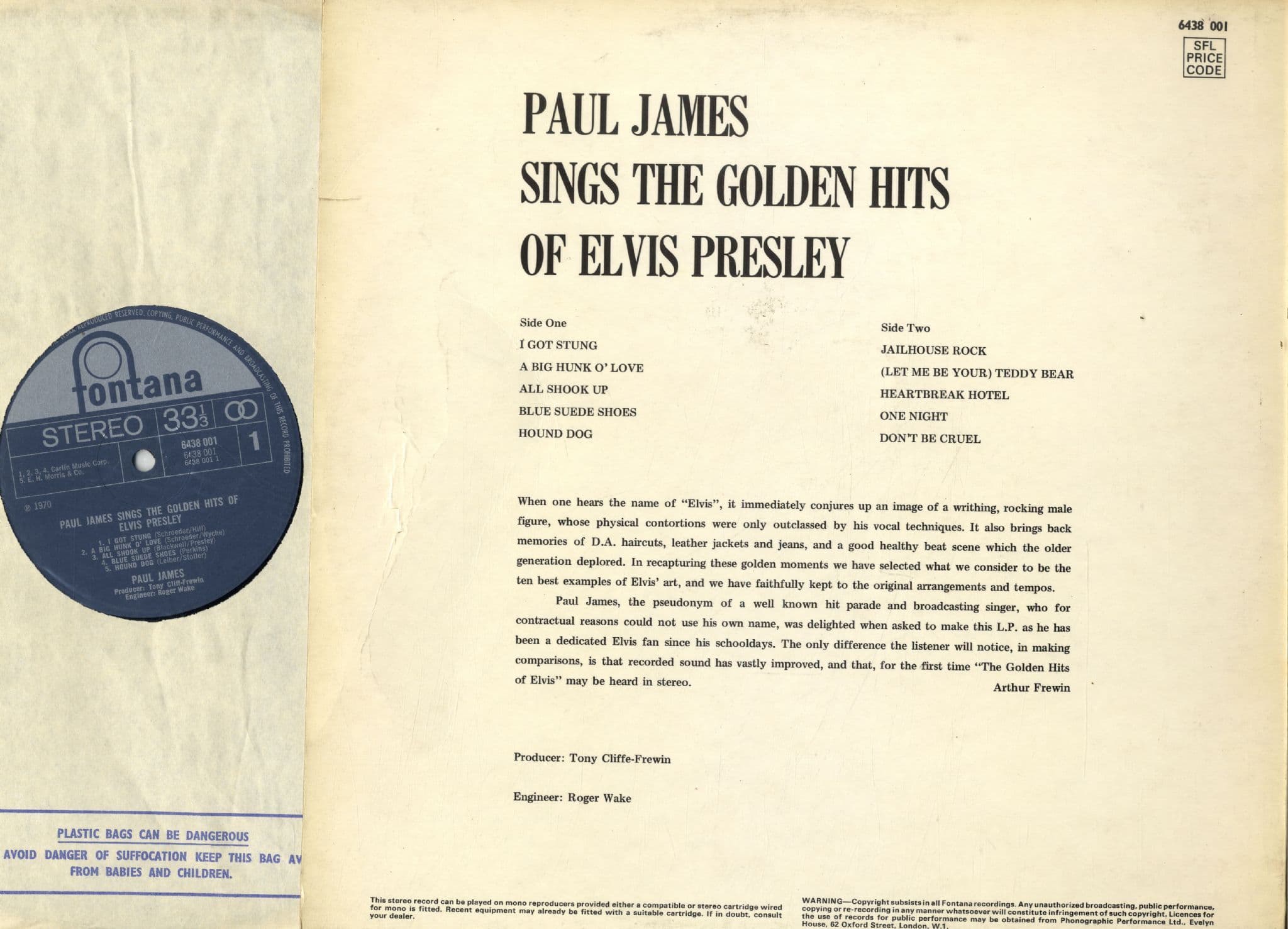 Paul James - Sings The Golden Hits Of Elvis Presley (6438 001) M-
