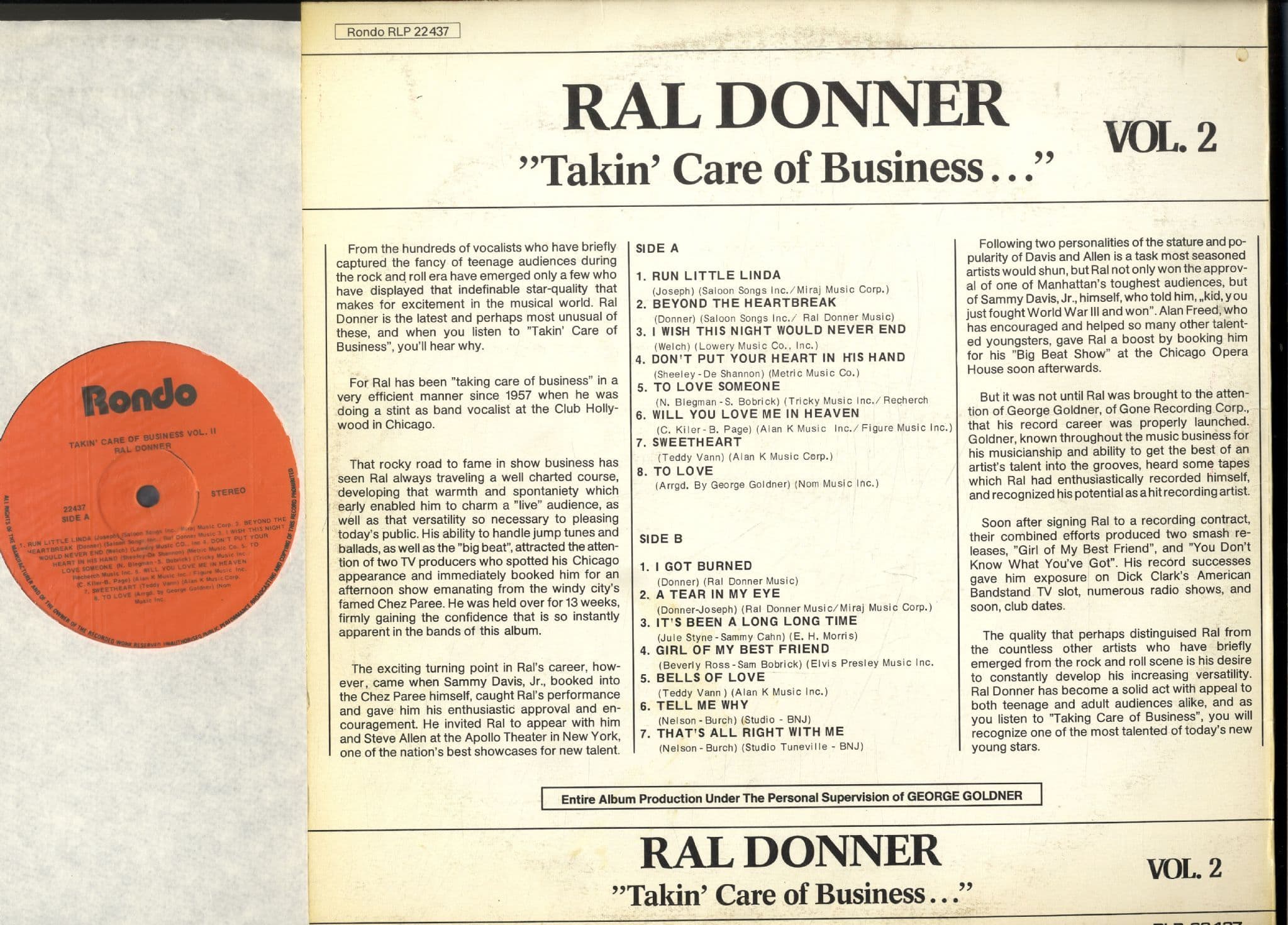 Ral Donner - Takin' Care Of Business Vol. 2 (RLP 22437) Ex/M-