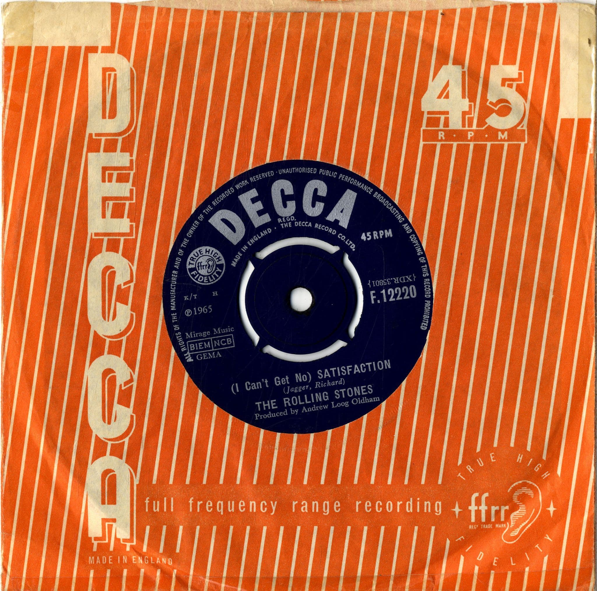 Rolling Stones,The - Satisfaction/The Spider And The Fly (F 12220)