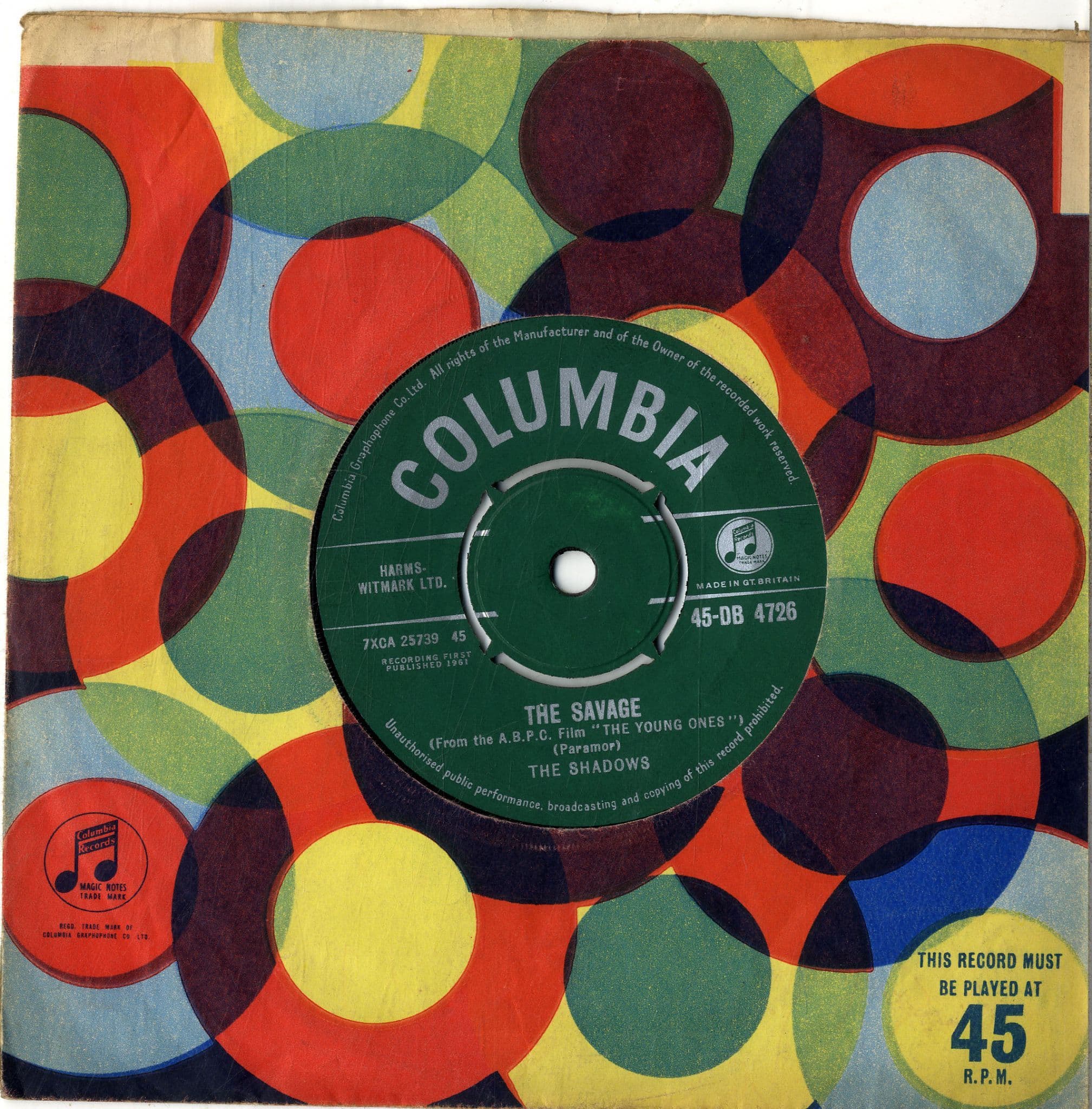 Shadows,The - The Savage/Peace Pipe (DB 4726) Ex