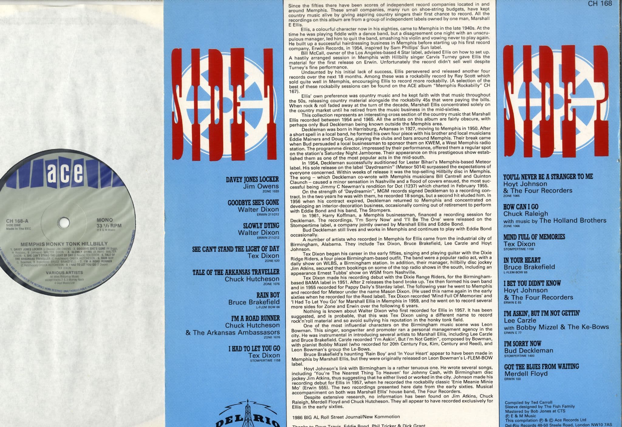 Various Artists - Memphis Honky Tonk Hillbilly (Ace CH 168) M-